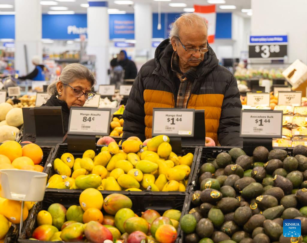 Customers shop for fruit at a Walmart store in Toronto, Canada, April 20, 2026. Canada's Consumer Price Index (CPI) increased 2.4 percent year over year in March, up from an increase of 1.8 percent in February, Statistics Canada said on Monday. (Photo by Zou Zheng/Xinhua)