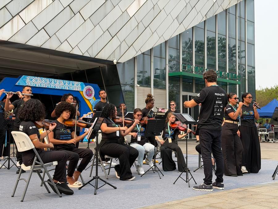 Throughout the event, the orchestra alternated between Brazilian classics and well-known Chinese songs. The selection carried symbolic weight: "Tico-Tico no Fubá" channels the festive Brazilian spirit, while "Flor de Lis" serves as a counterpart to the Chinese folk song "Mo Li Hua" (Jasmine Flower), creating a floral-themed dialogue between the two cultures.