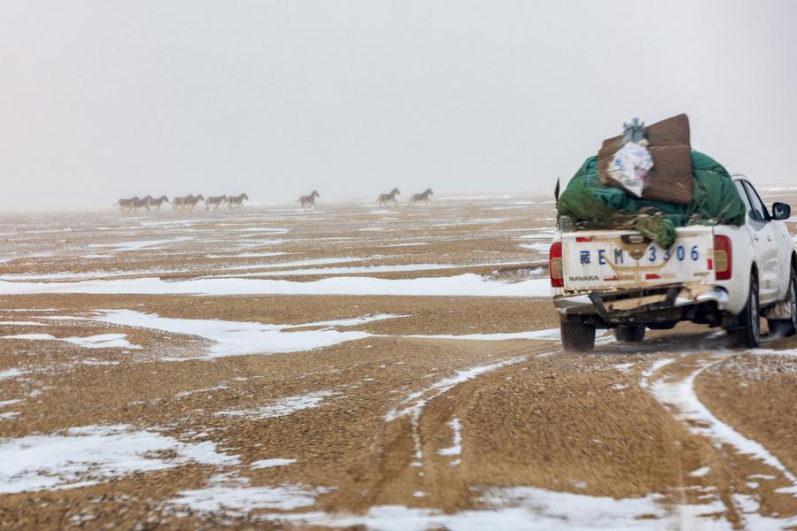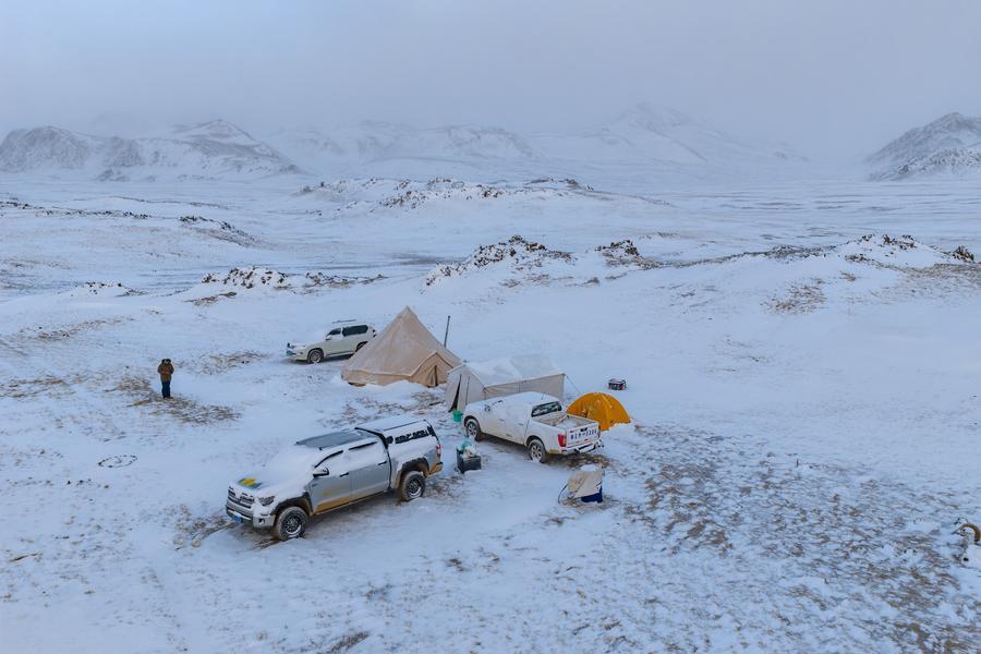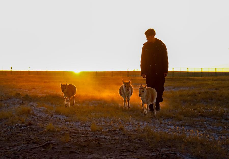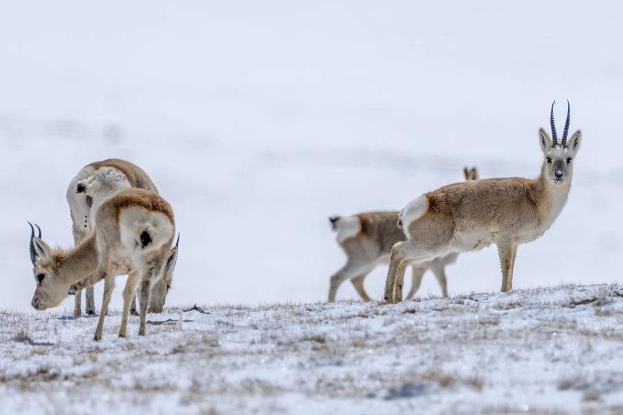 LHASA, April 21 (Xinhua) -- Changtang National Nature Reserve, a 4,500-meter-high wilderness in north of Xizang, is dubbed a "paradise for wildlife." It is a refuge for rare wild animals such as Tibetan antelope, wild yaks and Tibetan wild donkeys, somewhere they can survive and reproduce. The reserve is home to 10 national first-level protected wild animals and 21 national second-level protected wild animals. Since 2015, 73 wildlife conservation stations have been set up in Changtang, with a total of 780 conservation officers. The conservation officers conduct regular patrols to learn about the situation of animals, deter poaching, and mitigate human-wildlife conflicts. With an intimate knowledge of the terrain and animal behavior, they serve as dedicated guardians of ecosystem within this remote wilderness area.
