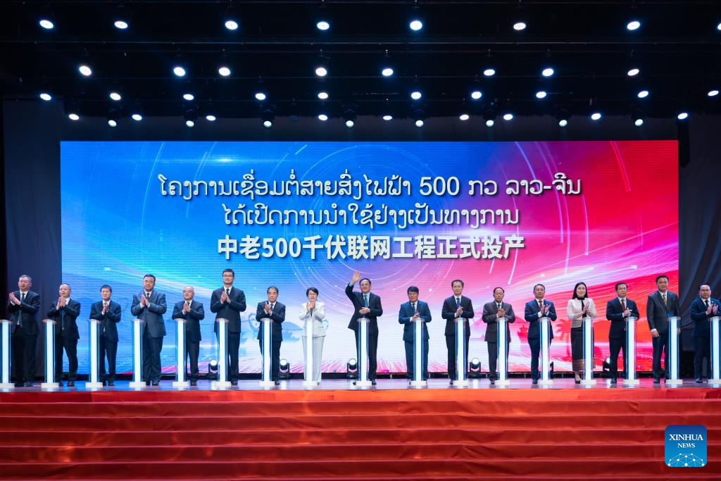 VIENTIANE, April 21 (Xinhua) -- A commissioning ceremony for the China-Laos 500 kV power grid interconnection project was held simultaneously on Monday in Lao capital Vientiane and Kunming in southwest China's Yunnan Province, marking a significant boost in power connectivity and mutual support capacity between the two countries.