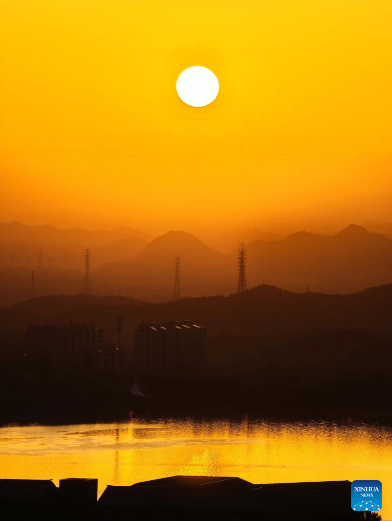 This photo taken on April 21, 2026 shows a view of the morning glow over Beijing, capital of China. (Photo by Zhong Yi/Xinhua)