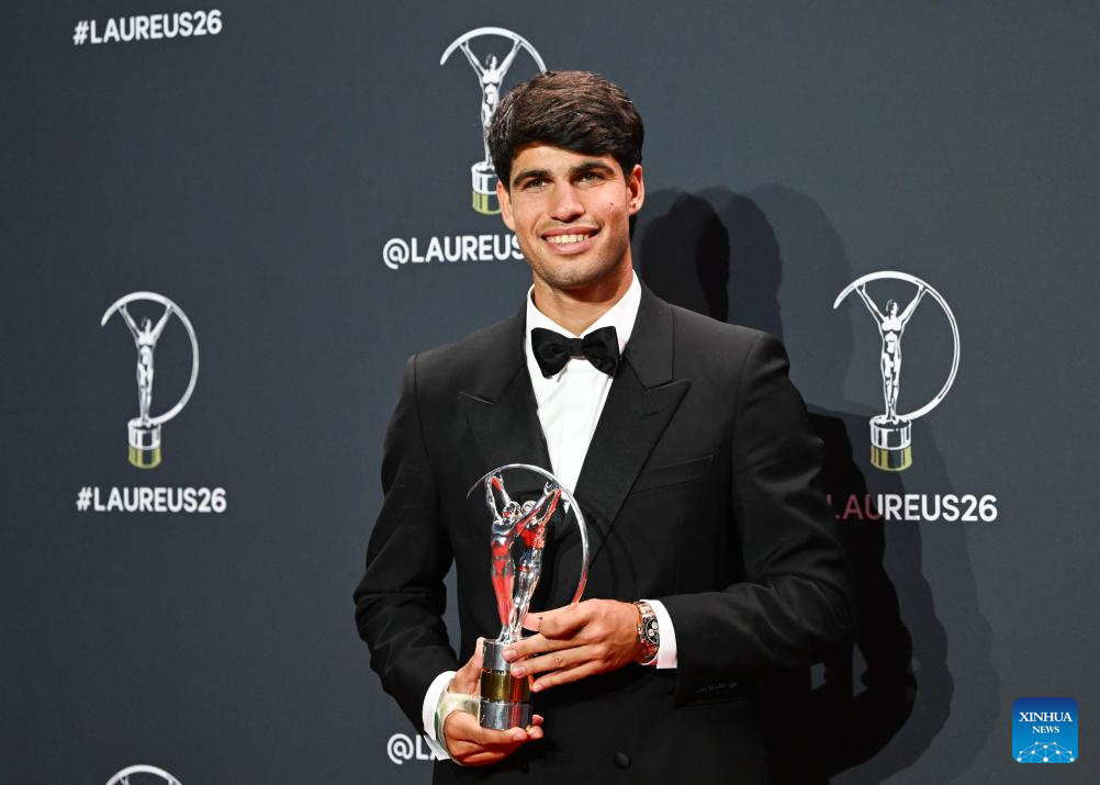MADRID, April 20 (Xinhua) -- Spanish tennis player Carlos Alcaraz was named World Sportsman of the year at the 2026 Laureus World Sports Awards on Monday night.