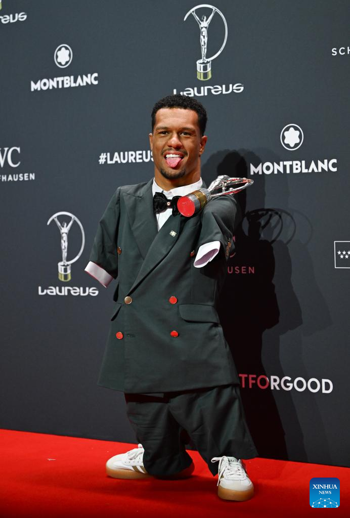Gabriel Araujo poses with the Laureus World Sportsperson of the Year with a Disability Award during the 2026 Laureus World Sports Awards ceremony in Madrid, Spain, April 20, 2026. (Xinhua/Cheng Min)