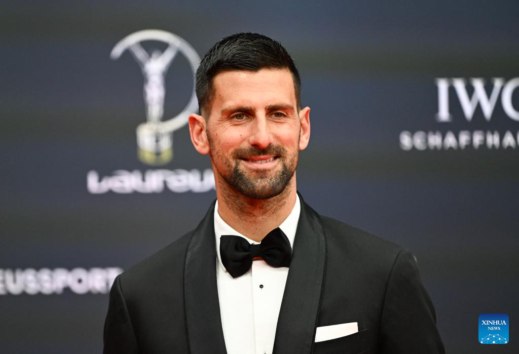 Novak Djokovic poses on the red carpet before the 2026 Laureus World Sports Awards ceremony in Madrid, Spain, April 20, 2026. (Xinhua/Cheng Min)