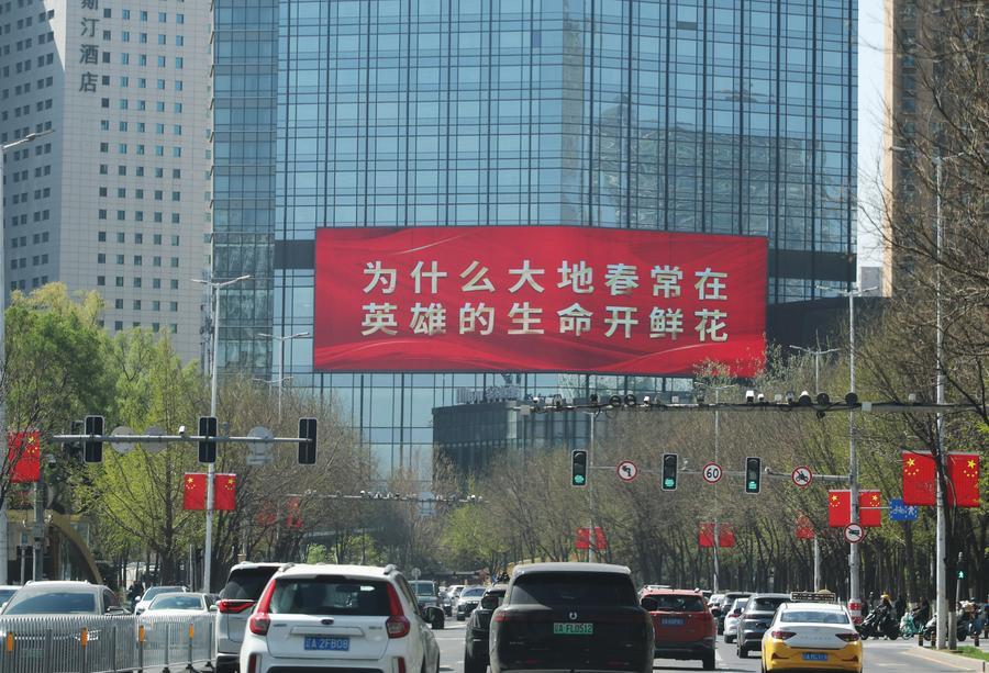 This photo taken on April 21, 2026 shows a slogan welcoming the return of Chinese People's Volunteers (CPV) martyrs' remains from the Republic of Korea (ROK) in Shenyang, northeast China's Liaoning Province. (Xinhua/Li Gang)