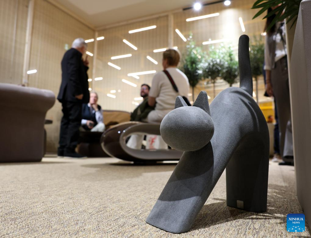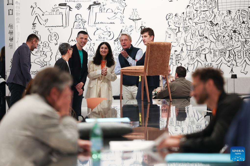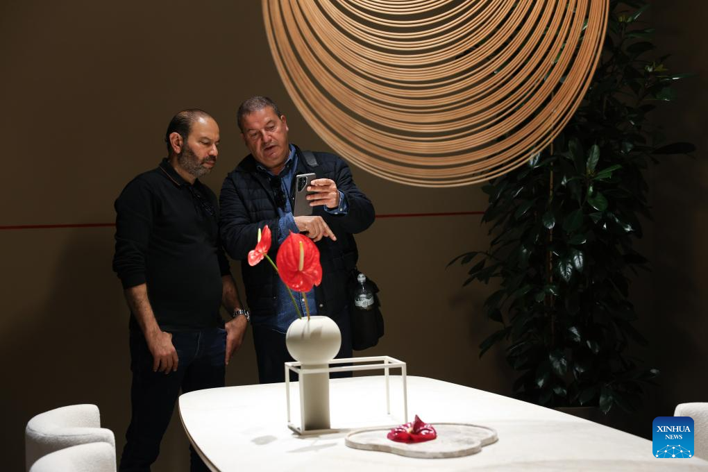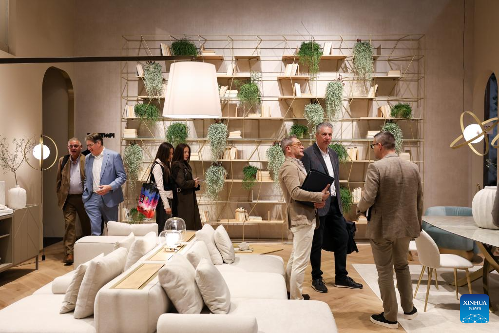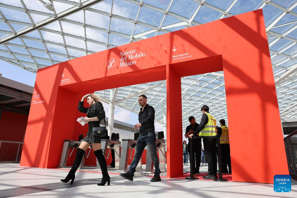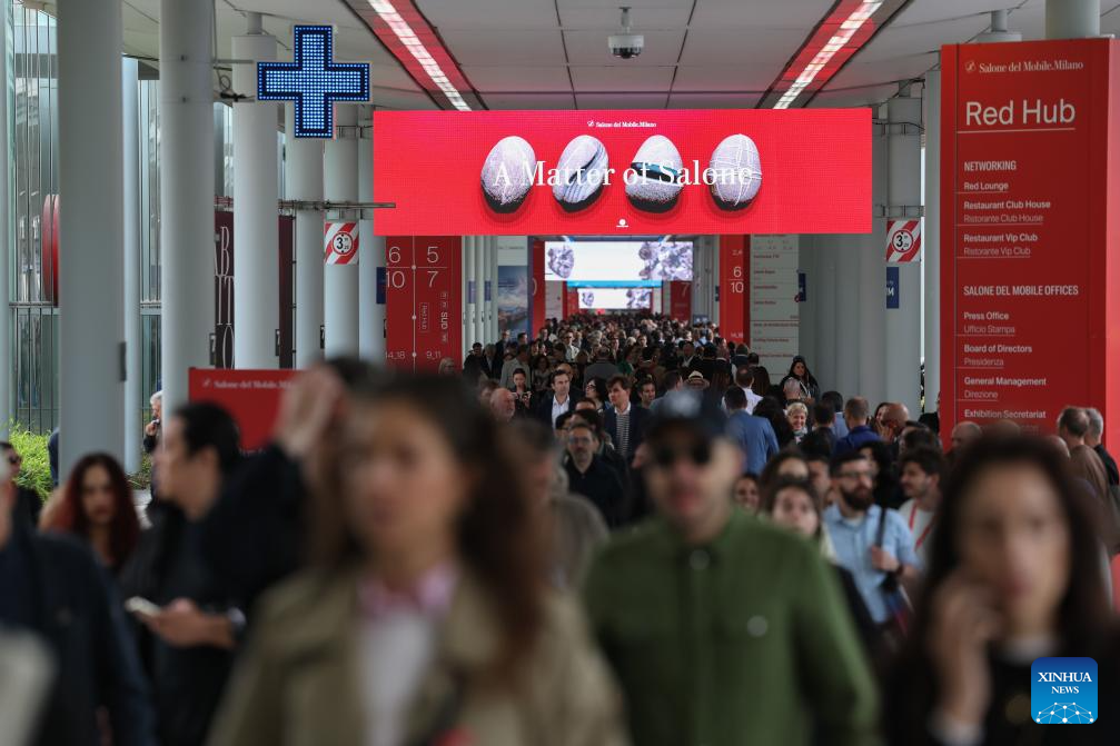 People visit the 64th Salone del Mobile at Fiera Milano Rho exhibition center in Milan, Italy, April 21, 2026. (Xinhua/Li Jing)