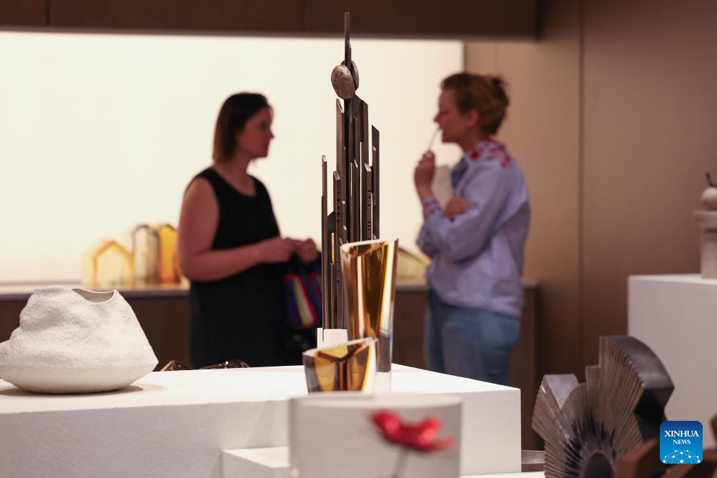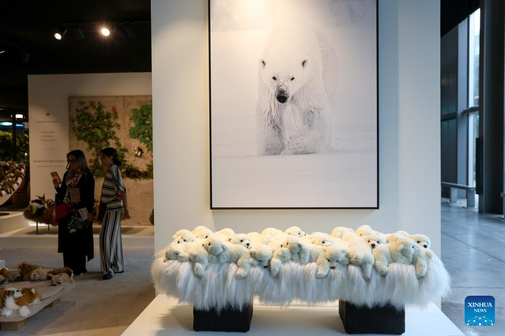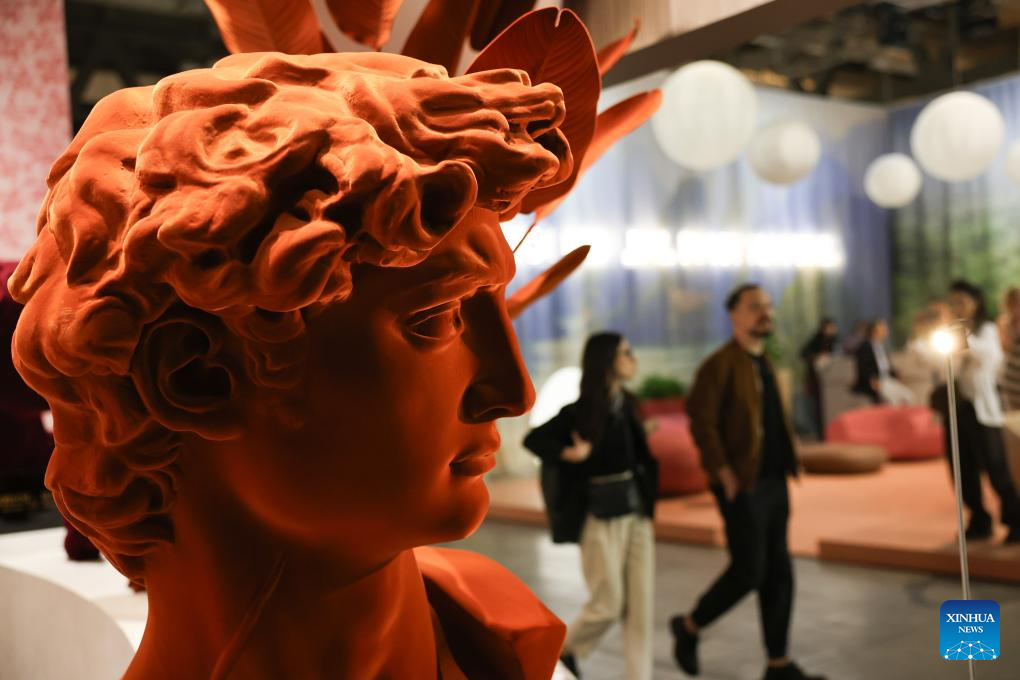 Visitors watch exhibits during the 64th Salone del Mobile at Fiera Milano Rho exhibition center in Milan, Italy, April 21, 2026. (Xinhua/Li Jing)