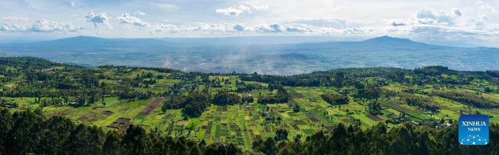 A stitched photo taken on April 21, 2026 shows a view of the Great Rift Valley in Kiambu County, Kenya. The Great Rift Valley, located in eastern Africa, is one of the largest and most prominent continental rift systems in the world and is often referred to as the "scar of the Earth."