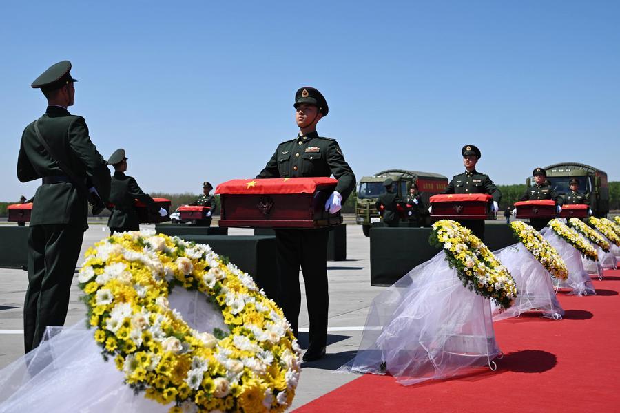 SHENYANG, April 22 (Xinhua) -- The remains of 12 Chinese People's Volunteers (CPV) martyrs who lost their lives during the War to Resist U.S. Aggression and Aid Korea (1950-1953) were returned to China from the Republic of Korea (ROK) on Wednesday.