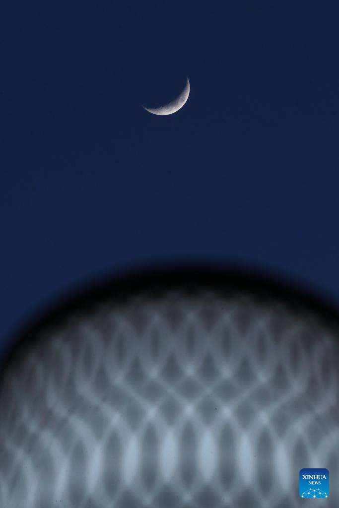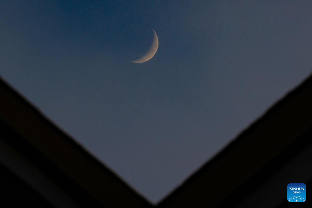 A waxing crescent moon is seen in the sky over Harbin, northeast China's Heilongjiang Province, April 21, 2026. (Photo by Yuan Yong/Xinhua)