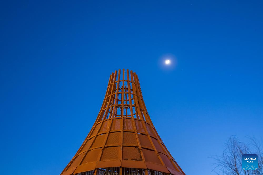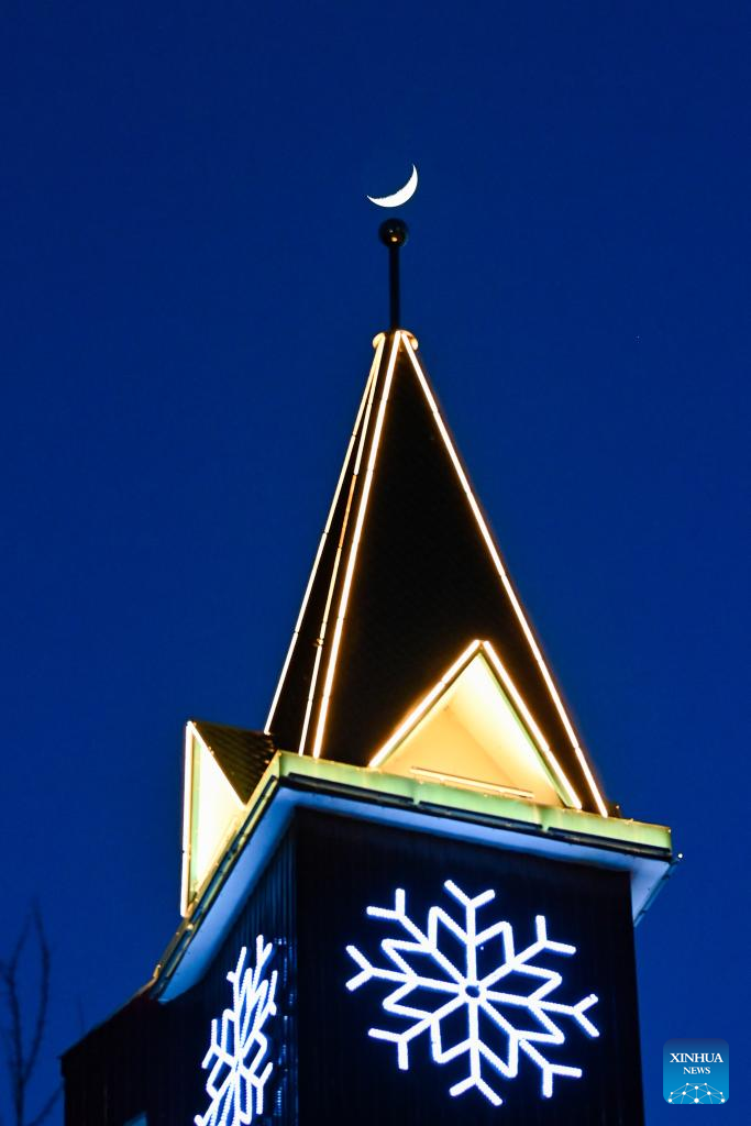 A waxing crescent moon is seen in the sky over Tongjiang, northeast China's Heilongjiang Province, April 21, 2026. (Photo by Liu Wanping/Xinhua)