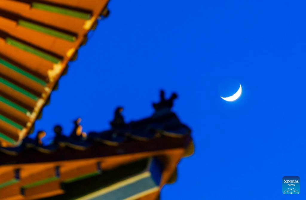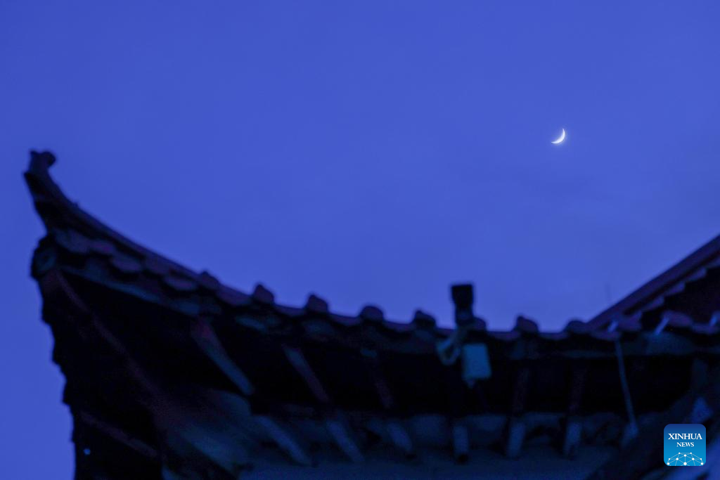 A waxing crescent moon is seen in the sky over Suihua, northeast China's Heilongjiang Province, April 21, 2026. (Photo by Liu Huapeng/Xinhua)