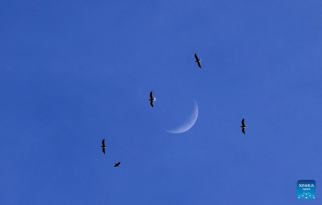 A waxing crescent moon is seen in the sky over Yichun, northeast China's Heilongjiang Province, April 21, 2026. (Photo by Li Jiaxing/Xinhua)