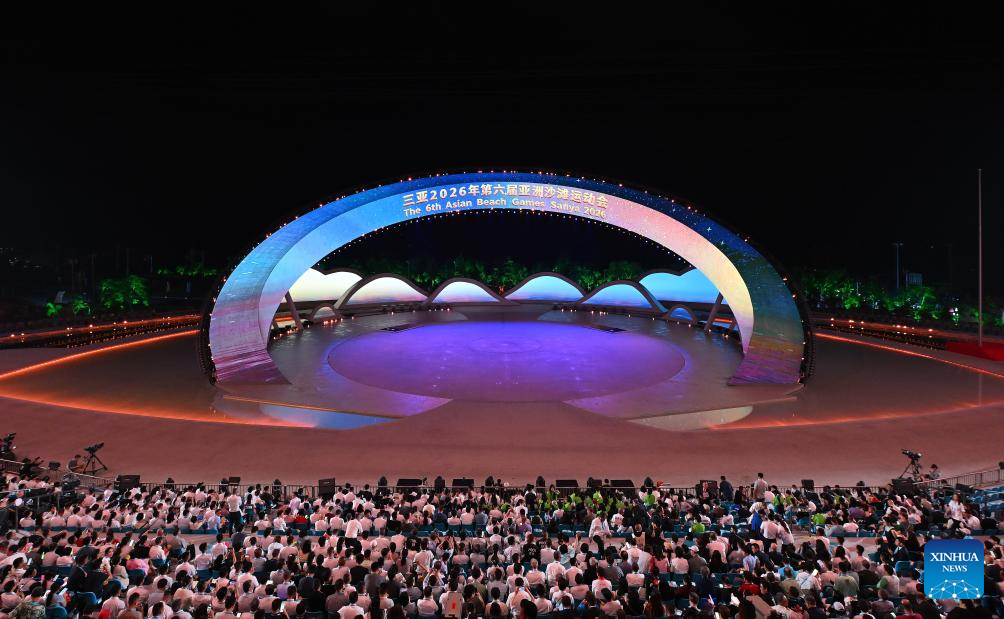 Photo taken on April 22, 2026 shows the general view of the opening ceremony of the 6th Asian Beach Games in Sanya, south China's Hainan Province. (Xinhua/Guo Cheng)