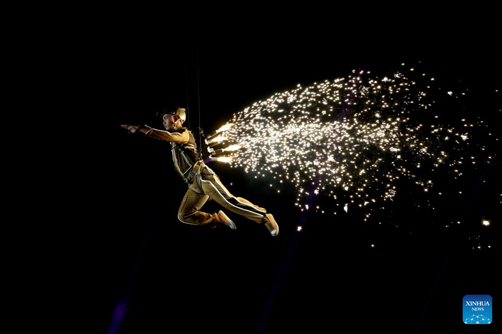 An artist performs during the opening ceremony of the 6th Asian Beach Games in Sanya, south China's Hainan Province, April 22, 2026. (Xinhua/Zhu Zheng)