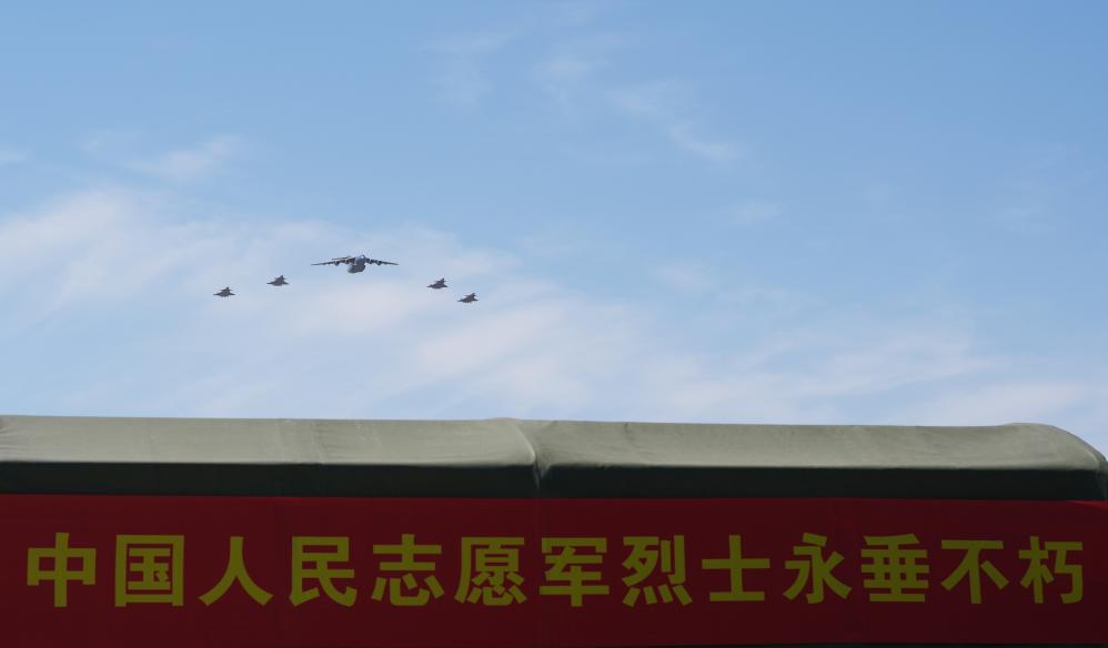 A Chinese Air Force Y-20B large transport aircraft carrying the remains of the fallen soldiers and 146 of their personal effects landed at Taoxian International Airport in Shenyang, capital of northeast China's Liaoning Province. After it entered China's airspace, the Y-20B transport aircraft was escorted by four J-20 fighter jets. (Xinhua/Li Gang)