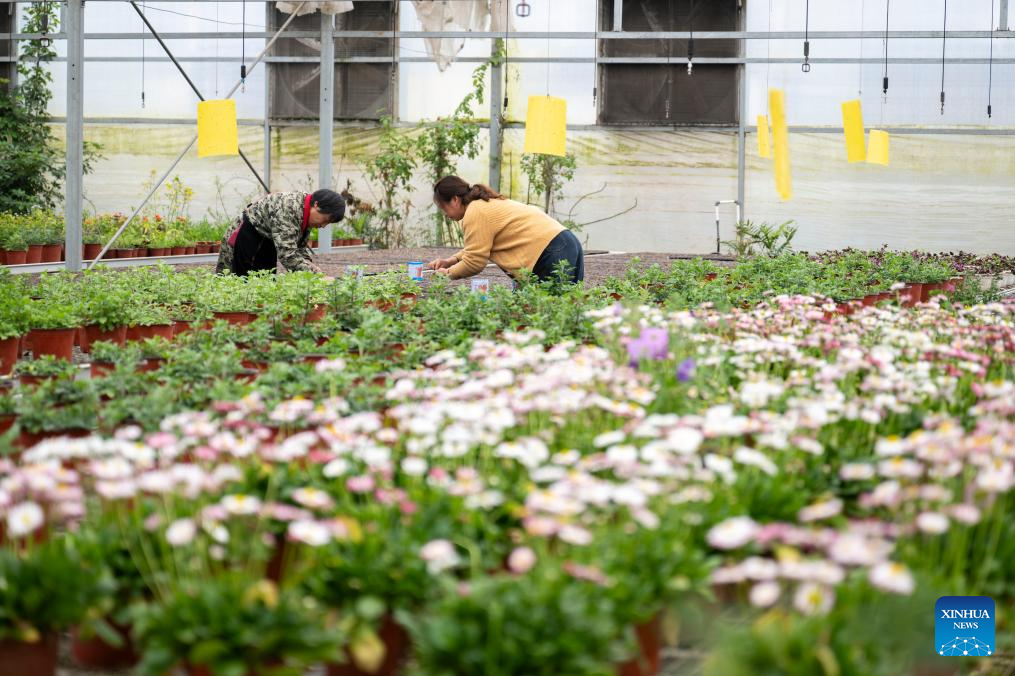 Workers tend to flowers at Kuo Yang-fu's farming complex in Ezhou, central China's Hubei Province, March 18, 2026. (Xinhua/Wu Zhizun)