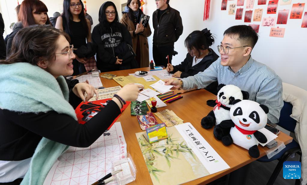 People participate in an event celebrating the International Chinese Language Day at the Confucius Institute of University of Magallanes in Punta Arenas, Chile, April 20, 2026. (Xinhua/Zhou Jiayi)
