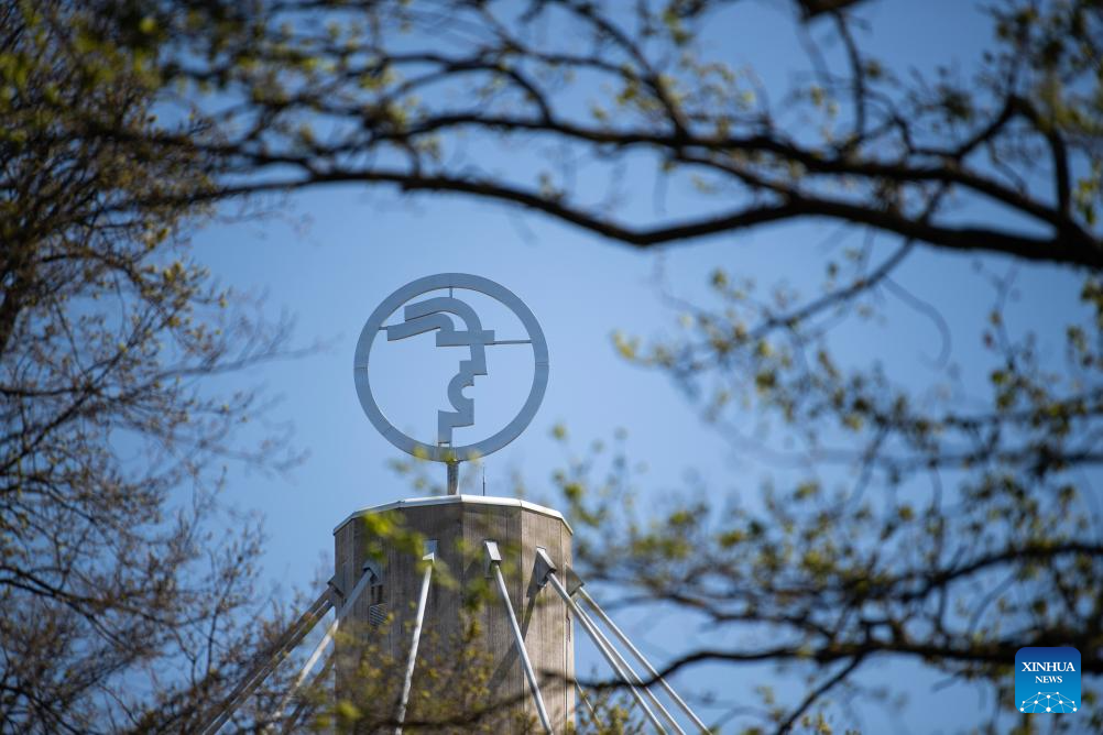 A sign of the Hannover Messe is pictured in Hannover, Germany, April 21, 2026. Hannover Messe 2026, Germany's flagship industrial trade fair, opened on Monday with industrial artificial intelligence (AI) and humanoid robots taking center stage for the first time.
