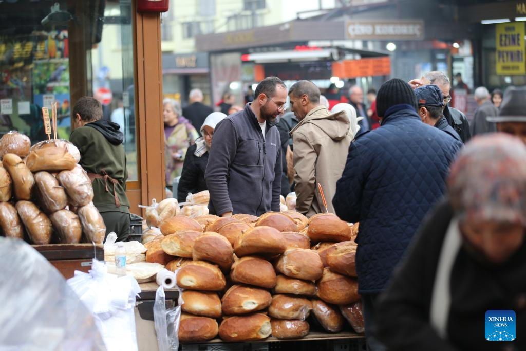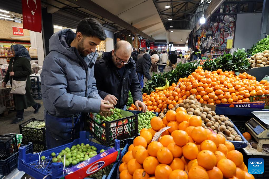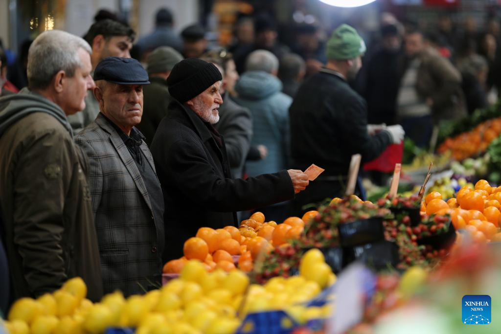 People shop at a market in Ankara, Türkiye, April 22, 2026. Türkiye's central bank kept its key policy rate unchanged at 37 percent on Wednesday, extending a cautious stance for a second straight month as price pressures persist following fallout from the Middle East conflict. (Mustafa Kaya/Handout via Xinhua)