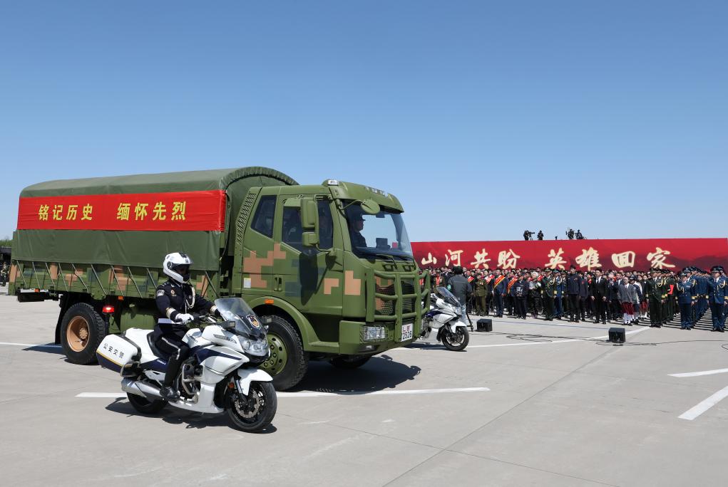 Coffins containing the remains of the Chinese People's Volunteers (CPV) martyrs, escorted by honor guards, arrives at the CPV martyrs' cemetery in Shenyang, northeast China's Liaoning Province, April 22, 2026. The remains of 12 Chinese People's Volunteers (CPV) martyrs who lost their lives during the War to Resist U.S. Aggression and Aid Korea (1950-1953) were returned to China from the Republic of Korea (ROK) on Wednesday.