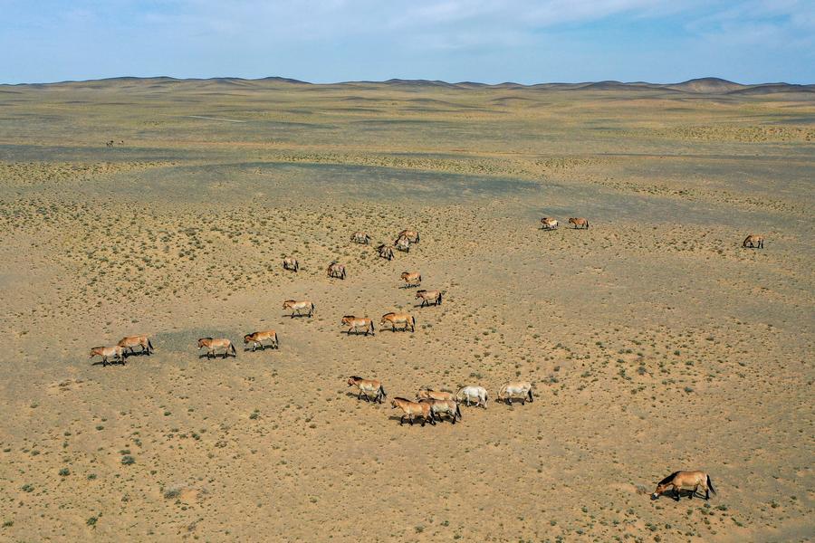This photo taken on April 22, 2026 shows the general view of the opening ceremony of the 6th Asian Beach Games in Sanya, south China's Hainan Province. (Xinhua/Lai Xiangdong)A Chinese Air Force Y-20B large transport aircraft carrying the remains of 12 Chinese People's Volunteers (CPV) martyrs is welcomed by a water cannon salute upon arrival at Taoxian International Airport in Shenyang, northeast China's Liaoning Province, April 22, 2026. The remains of 12 CPV martyrs who lost their lives during the War to Resist U.S. Aggression and Aid Korea (1950-1953) were returned to China from the Republic of Korea (ROK) on Wednesday. A Chinese Air Force Y-20B large transport aircraft carrying the remains of the fallen soldiers and 146 of their personal effects landed at Taoxian International Airport in Shenyang, capital of northeast China's Liaoning Province. After it entered China's airspace, the Y-20B transport aircraft was escorted by four J-20 fighter jets. (Photo by Yu Hongchun/Xinhua)A humanoid robot passes a bottle of beverage to a customer at a convenience store in Haidian District of Beijing, capital of China, April 22, 2026. An embodied large model robot has recently been deployed in a convenience store in Haidian District to provide regular service. The robot is responsible for greeting customers, answering product inquiries, providing promotion information, and delivering goods. (Xinhua/Ren Chao)A drone photo taken on April 21, 2026 shows a view of Kunpeng Trail No. 1 Bridge in Shenzhen, south China's Guangdong Province. In recent years, Shenzhen has explored a distinctive path for biodiversity conservation in urban areas by developing ecological trails, building eco-friendly facilities and implementing refined ecological management. These efforts have reserved sufficient space for wildlife habitats and migration routes, creating "dual trails" to support the harmonious coexistence of humans and wildlife. (Xinhua/Liang Xu)People dry indigo dyed fabrics in Zhaoxing Dong Village of Liping County, southwest China's Guizhou Province, April 21, 2026. In Dong ethnic communities such as the Zhaoxing Dong Village, intangible cultural heritage skills like indigo dyeing and embroidery are an integral part of local culture. In recent years, through organizing cooperatives, providing skills training, and promoting brand development, these traditional crafts have made their way into the market, becoming a distinctive industry that boosts rural revitalization and improves local people's well-being. (Xinhua/Yang Wenbin)An aerial drone photo taken on April 22, 2026 shows Przewalski's horses released into the wild in the Kalamaili Nature Reserve in northwest China's Xinjiang Uygur Autonomous Region. A total of 30 Przewalski's horses were successfully reintroduced to the Kalamaili Nature Reserve on Wednesday after completing rewilding training. (Xinhua/Ding Lei)People visit the exhibition area of Unitree Robotics at the Hannover Messe 2026 in Hannover, Germany, April 20, 2026. Hannover Messe 2026, Germany's flagship industrial trade fair, opened on Monday with industrial artificial intelligence (AI) and humanoid robots taking center stage for the first time. Chinese companies maintain a strong presence at the fair, with approximately 700 exhibitors, making China the second-largest exhibitor group after host country Germany, according to the organizer. (Xinhua/Zhang Haofu)People attend an Earth Day protest in New York, the United States, on April 22, 2026. An Earth Day protest against the Trump administration's environmental policies was held in New York on Wednesday. (Xinhua/Zhang Fengguo)Birds are pictured at the Lake Nakuru National Park in the Great Rift Valley, Nakuru County, Kenya, March 2, 2026. The Great Rift Valley, located in eastern Africa, is one of the largest and most prominent continental rift systems in the world and is often referred to as the "scar of the Earth." The region features remarkably diverse landscapes, including volcanoes, escarpments, gorges, as well as numerous lakes. A vast array of wildlife lives and migrates here, creating some of the world's most renowned natural spectacles. Kenya serves as one of the main gateways for exploring the Great Rift Valley and its key attractions. (Xinhua/Xie Jianfei)■
