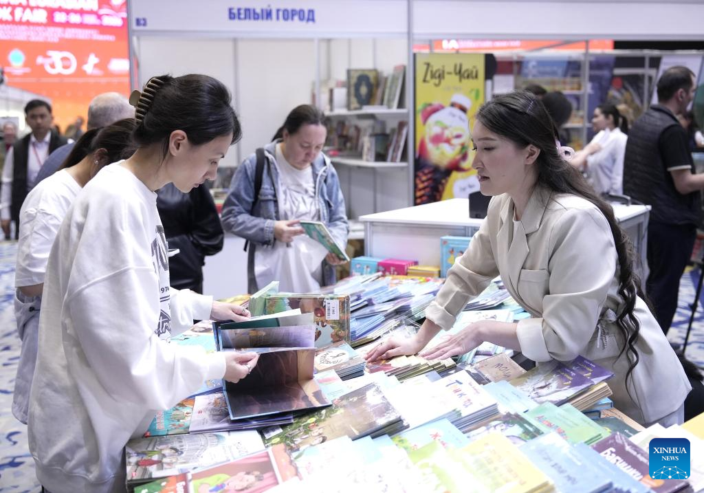 People browse books during the Eurasian Book Fair in Astana, Kazakhstan, April 22, 2026. This event is held here from April 22 to 26. (Photo by Kalizhan Ospanov/Xinhua)