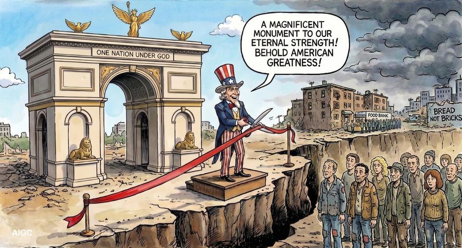 Uncle Sam: I Need Triumphal Arch vs. U.S. People: We Need Better Life.