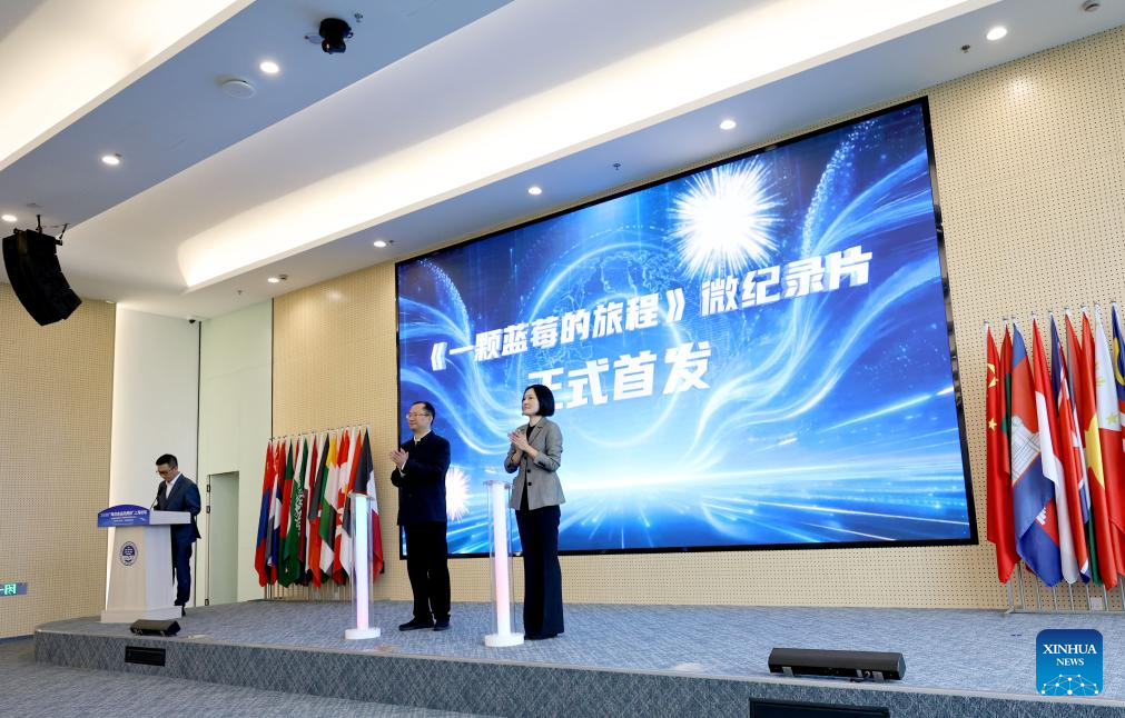 This photo taken on April 23, 2026 shows a scene during the premiere of a micro-documentary at the opening ceremony of the second Shared Oceans · Shanghai Forum 2026 in east China's Shanghai. (Xinhua/Fang Zhe)