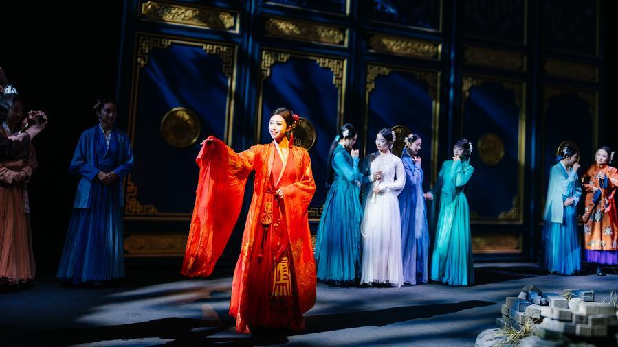 Named "Unique Dream of Red Mansion," this theater complex features 21 innovative plays, including those inspired by the seminal 18th-century book "A Dream of Red Mansions" and independent plays. In one theater, the audience members stand on a stage while characters from the book observe them from spectator seats as if gazing upon the afterlife, while in another show, many female figures in the novel confront the author over the cruel twists of fate he penned for them.