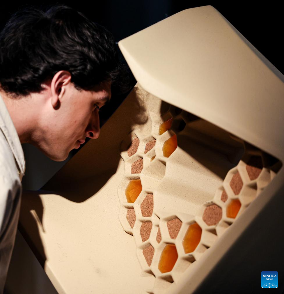 A visitor views an exhibit during Milan Design Week at Plazzo Litta in Milan, Italy, April 23, 2026. (Xinhua/Li Jing)