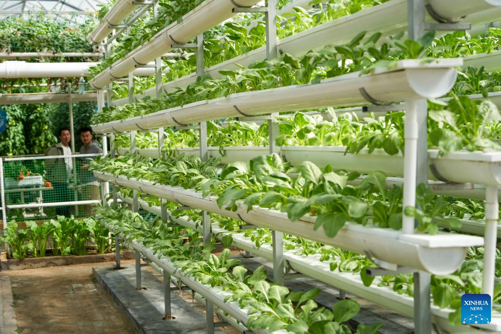 A vertical plantation scenario for unmanned farming is displayed at the 27th China (Shouguang) International Vegetable Science and Technology Expo in Shouguang, east China's Shandong Province, April 20, 2026. Featuring more than 50 types of agricultural robots in its booth for digital agriculture, this year's expo allow visitors to peep into the future of unmanned farming. (Xinhua/Xu Suhui)