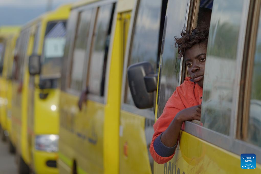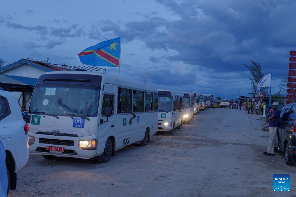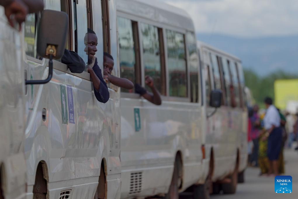 Buses with Congolese refugees returning from Burundi on board are seen in Uvira, Democratic Republic of the Congo (DRC), on April 23, 2026. The first group of roughly 470 Congolese refugees in Burundi began returning voluntarily to eastern Democratic Republic of the Congo on Thursday, the United Nations refugee agency said.