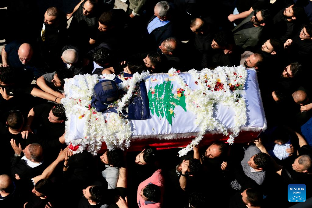 People attend the funeral of Lebanese journalist Amal Khalil in Baissariyeh, Lebanon, April 23, 2026. Khalil, who worked for Lebanese newspaper Al-Akhbar, was killed on Wednesday after being trapped under rubble following Israeli airstrikes in southern Lebanon, reported Lebanese broadcaster Al-Jadeed TV.