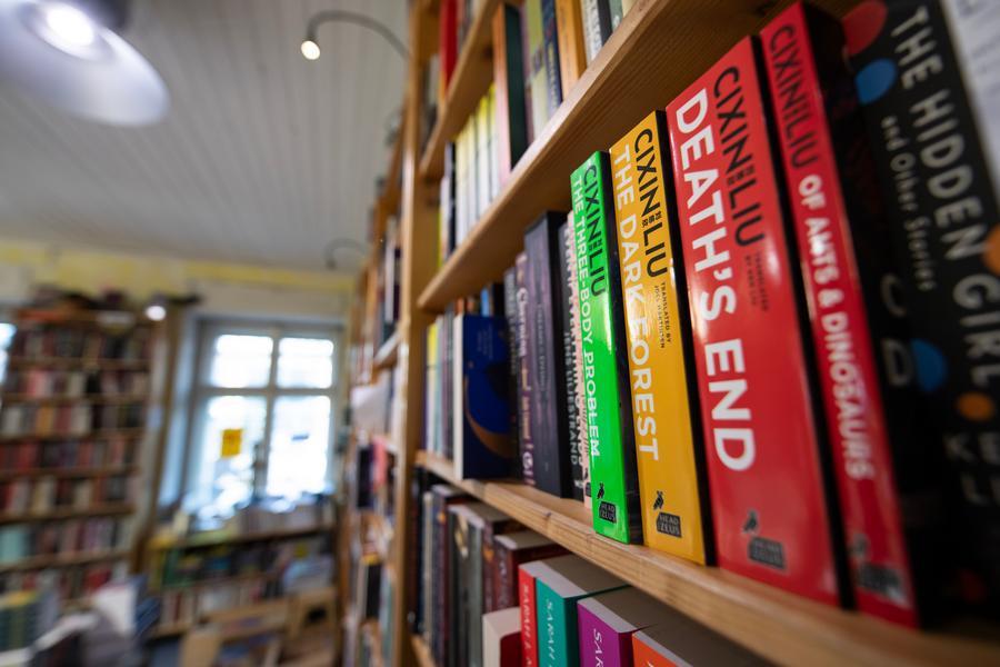 Otherland, a sci-fi bookstore near the former Tempelhof Airport, carries around 11,000 titles within less than 100 square meters, specializing in science fiction, fantasy, and horror in German and English.