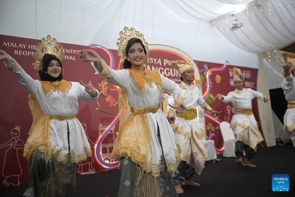 Performers dance during the reopening ceremony of the Malay Heritage Centre in Singapore's Kampong Gelam on April 25, 2026.