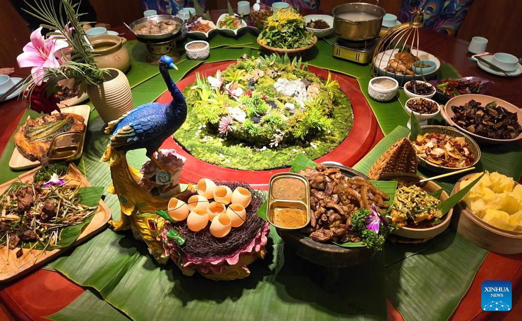 This photo taken on April 24, 2026 shows the "peacock banquet" at a restaurant in Kunming, southwest China's Yunnan Province. (Xinhua/Chen Xinbo)