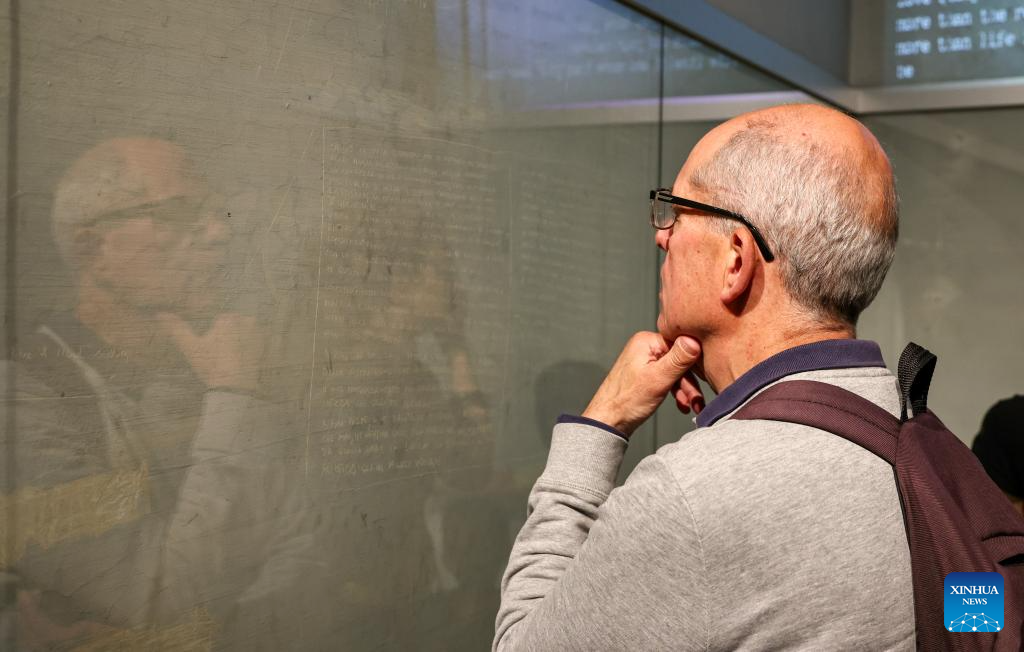 Visitors view wall inscriptions at the Museum of the Liberation of Rome, in Rome, Italy, on April 25, 2026.