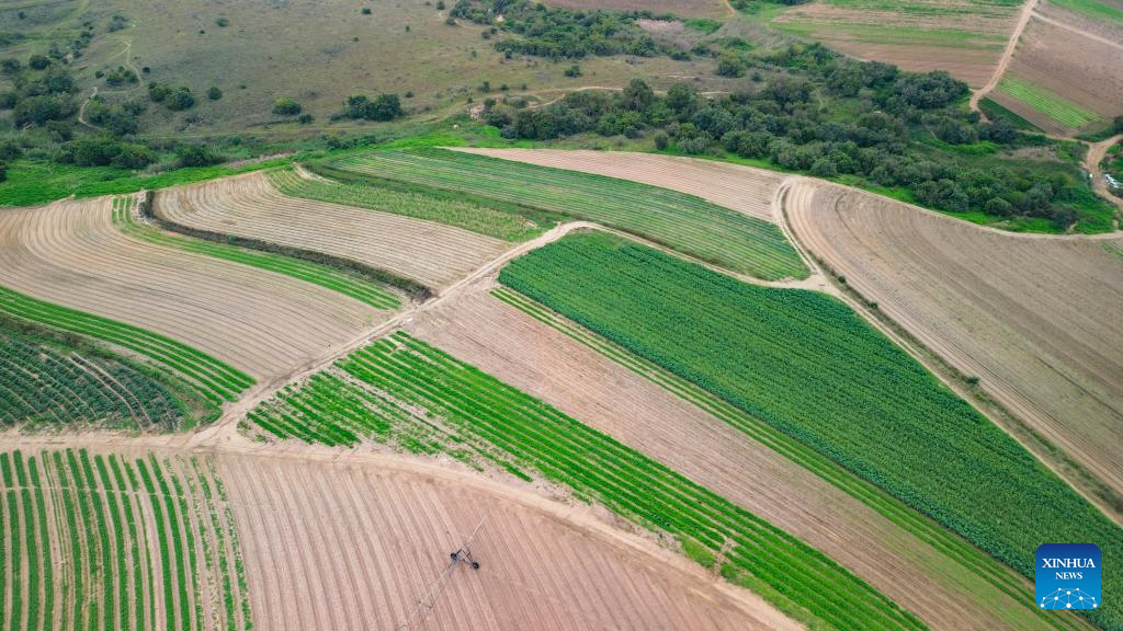An aerial drone photo taken on April 25, 2026 shows farmlands in the suburb of Johannesburg, South Africa. (Xinhua/Chen Wei)