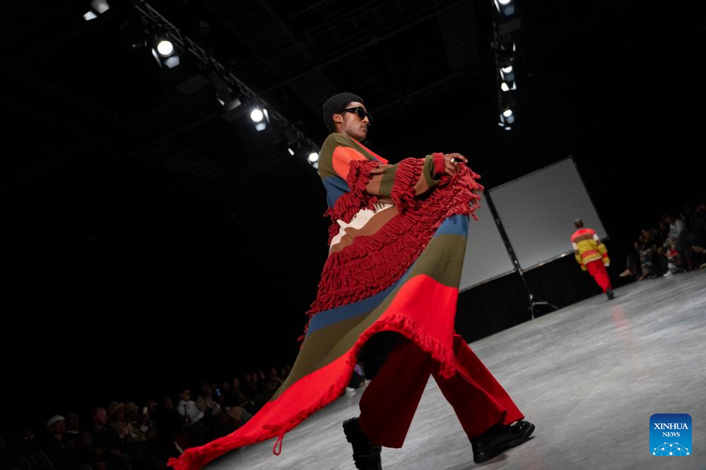 A model presents a creation during the South African Fashion Week in Johannesburg, South Africa, April 25, 2026. (Photo by Ihsaan Haffejee/Xinhua)