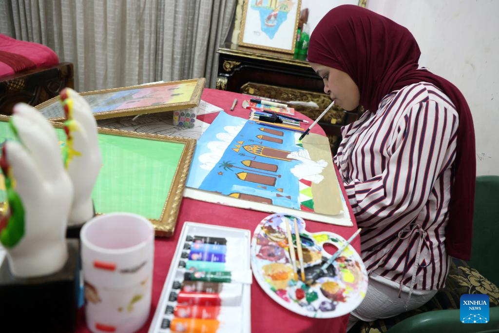 19-year-old Basmala Mohamed Fakhry, a young artist with a disability, paints a picture at her studio in Aswan, Egypt, April 22, 2026. (Xinhua/Ahmed Gomaa)