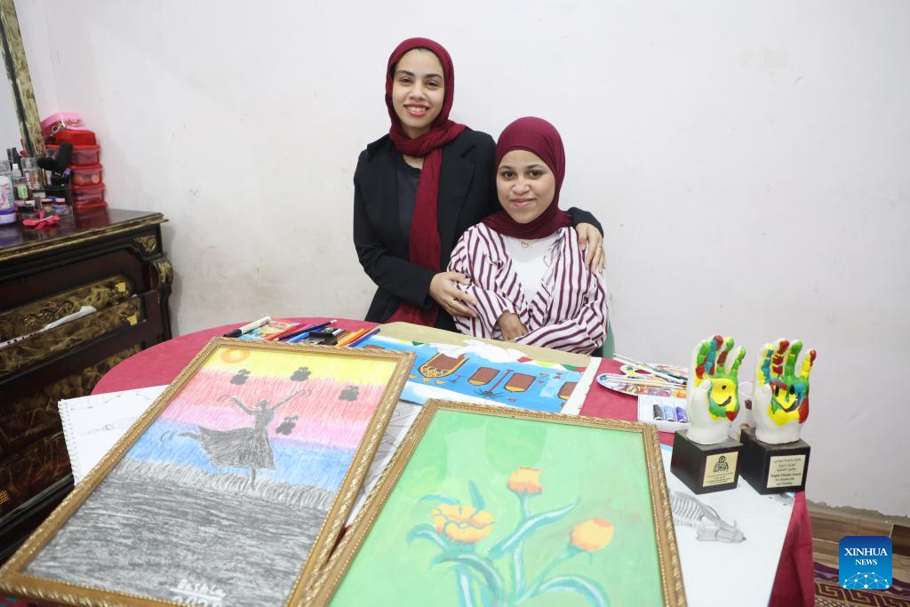 This photo taken on April 22, 2026 shows 19-year-old Basmala Mohamed Fakhry (R), a young artist with a disability, with her friend Nada Ahmed Soghayer at a studio in Aswan, Egypt. (Xinhua/Ahmed Gomaa)