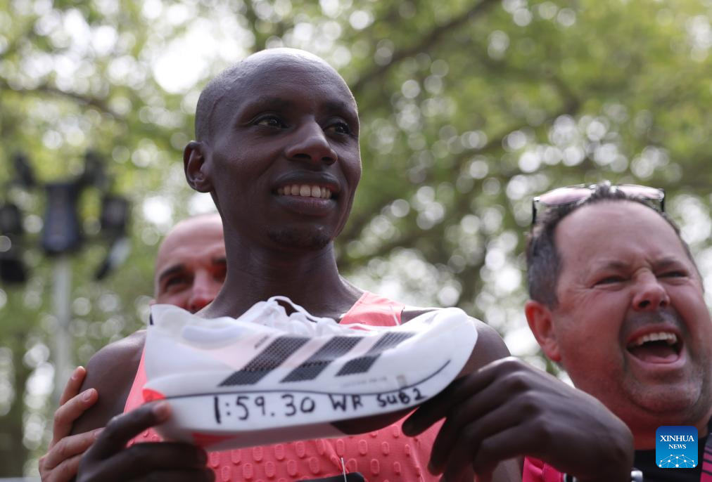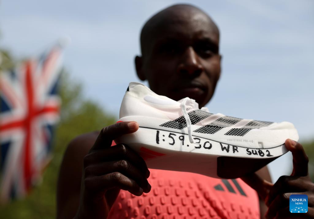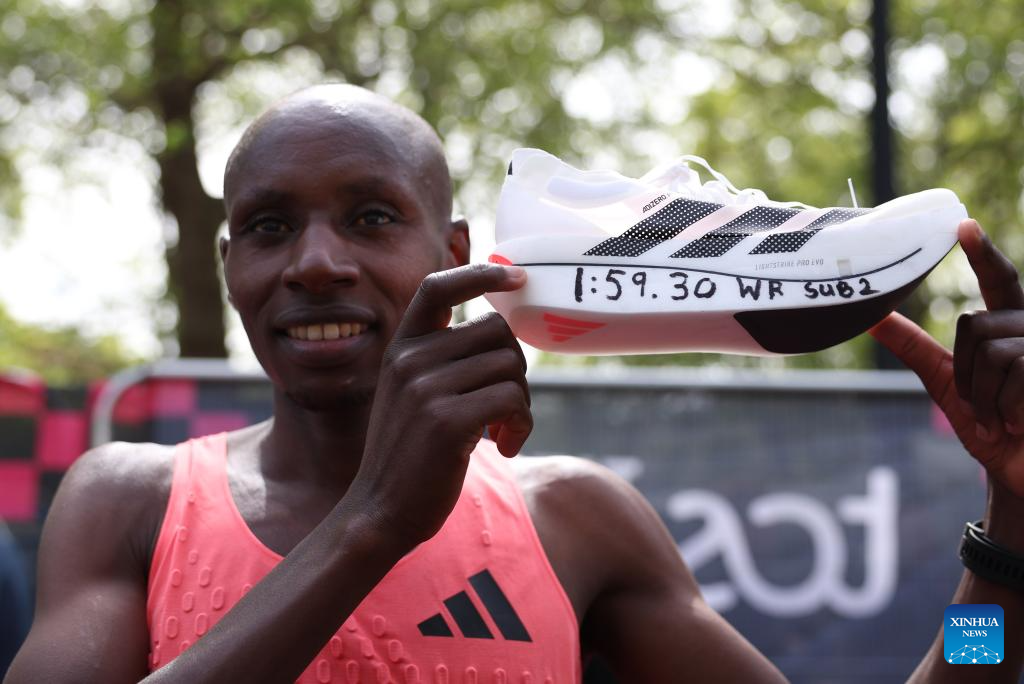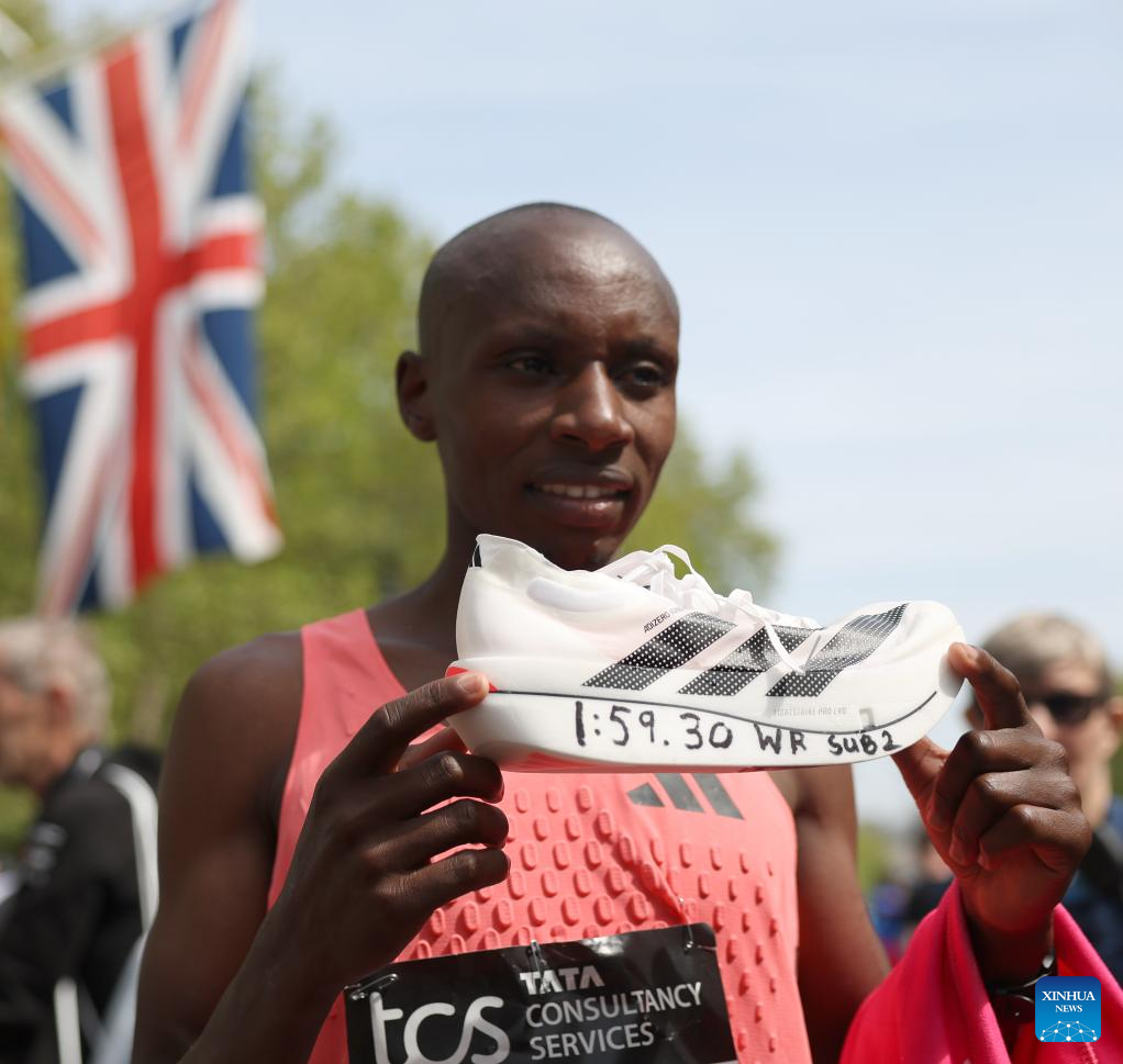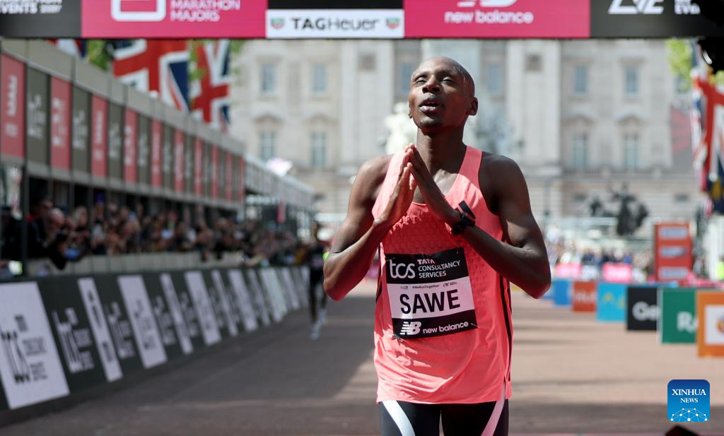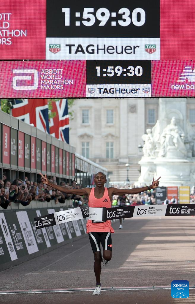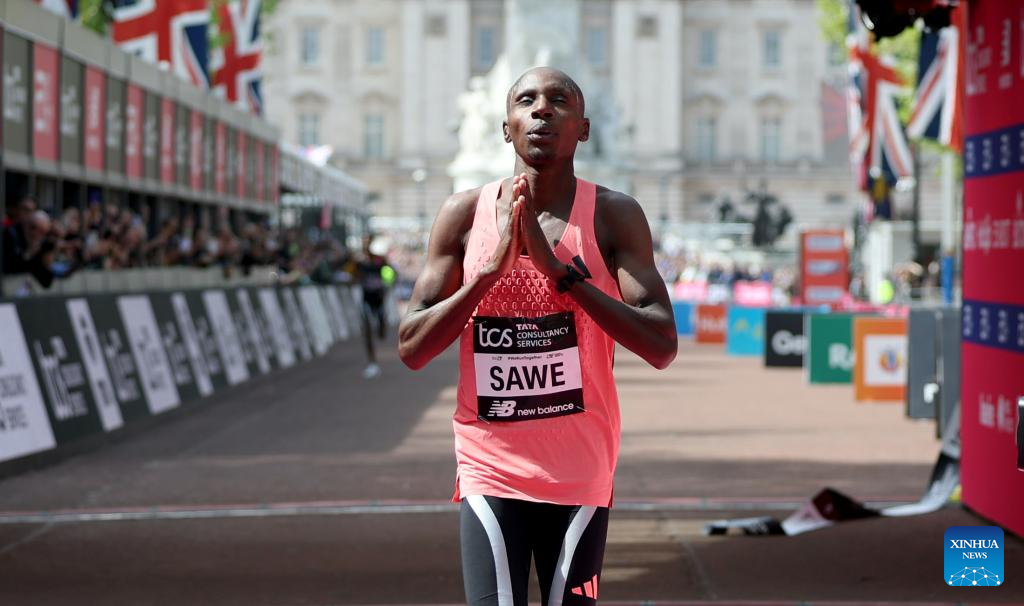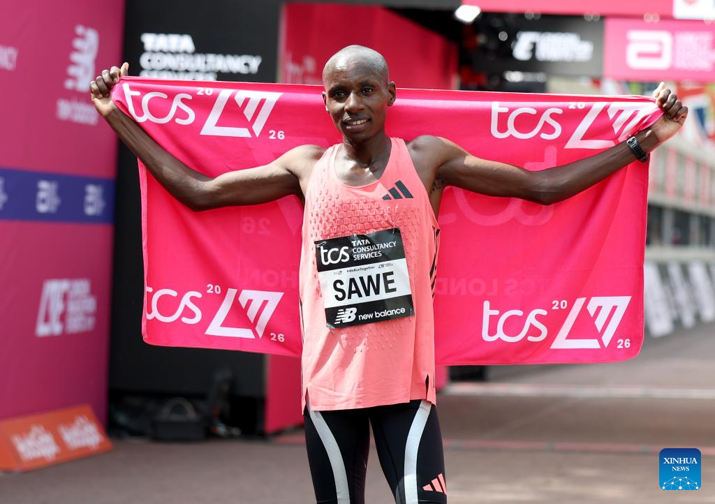 LONDON, April 26 (Xinhua) -- Kenya's Sabastian Sawe clocked a winning time of one hour, 59 minutes and 30 seconds in the 2026 London Marathon on Sunday, becoming the first man to run a marathon in under two hours.