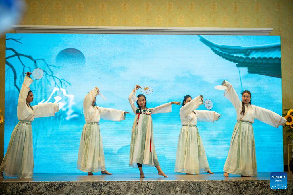 Nepalese students perform traditional Chinese dance at a celebration for the 2026 International Chinese Language Day in Lalitpur, Nepal, on April 26, 2026. The Confucius Institute at Nepal's Tribhuvan University (TU) hosted a celebration on Sunday for the 2026 International Chinese Language Day. (Photo by Hari Maharjan/Xinhua)