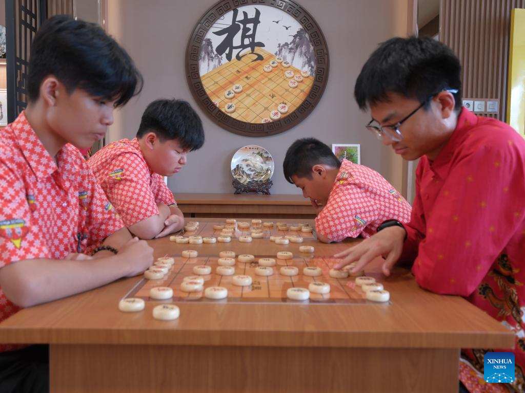 Students learn to play Chinese chess at the Confucius Classroom of Puhua Trilingual School in Purwokerto, Central Java Province, Indonesia, April 25, 2026. (Xinhua/Li Fuyu)