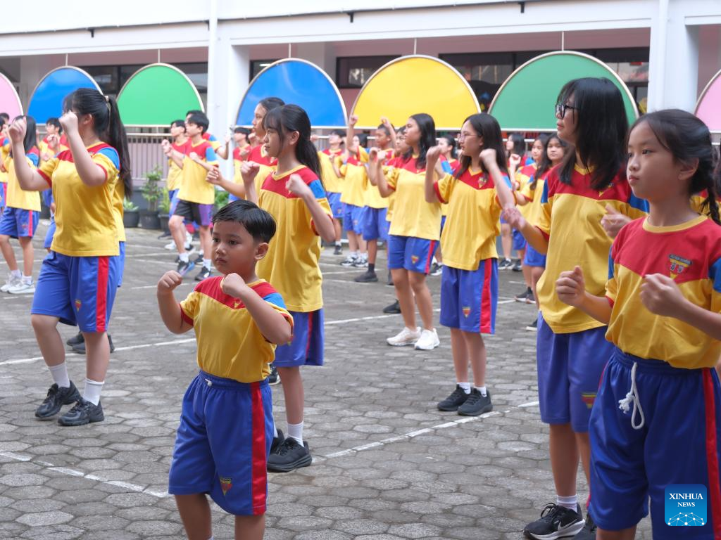 Students do exercise at Puhua Trilingual School in Purwokerto, Central Java Province, Indonesia, April 25, 2026. (Xinhua/Li Fuyu)