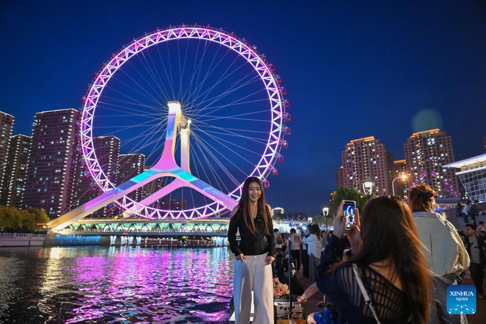 This photo shows a night view of Tianjin, north China, April 24, 2026. In recent years, Tianjin has become a popular tourist destination, as the city keeps enriching its nighttime experience by expanding tourism scenarios and diversifying business formats. (Xinhua/Sun Fanyue)