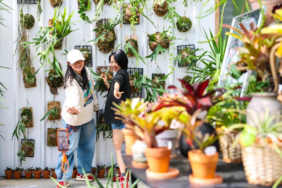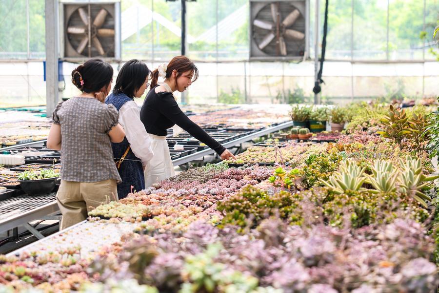 People select succulent plants at a planting base in Yanshan Village of Shangcheng District of Hangzhou City, east China's Zhejiang Province, April 25, 2026.(Xinhua/Jiang Han)This photo taken on April 26, 2026 shows a cafe located in a tea garden in Xiaogucheng Village of Jingshan Town in Yuhang District of Hangzhou City, east China's Zhejiang Province. (Xinhua/Jiang Han)Tourists visit a tea garden in Xiaogucheng Village of Jingshan Town in Yuhang District of Hangzhou City, east China's Zhejiang Province, April 26, 2026. (Xinhua/Jiang Han)People pose for photo with succulent plants at a planting base in Yanshan Village of Shangcheng District of Hangzhou City, east China's Zhejiang Province, April 25, 2026. (Xinhua/Jiang Han)An aerial drone photo taken on April 26, 2026 shows tourists driving go-karts in Xiaogucheng Village of Jingshan Town in Yuhang District of Hangzhou City, east China's Zhejiang Province. (Xinhua/Jiang Han)Tourists visit a cafe located in a tea garden in Xiaogucheng Village of Jingshan Town in Yuhang District of Hangzhou City, east China's Zhejiang Province, April 26, 2026. (Xinhua/Jiang Han)An aerial drone photo taken on April 26, 2026 shows tourists enjoying their leisure time at a camping site in Xiaogucheng Village of Jingshan Town in Yuhang District of Hangzhou City, east China's Zhejiang Province. (Xinhua/Jiang Han)■