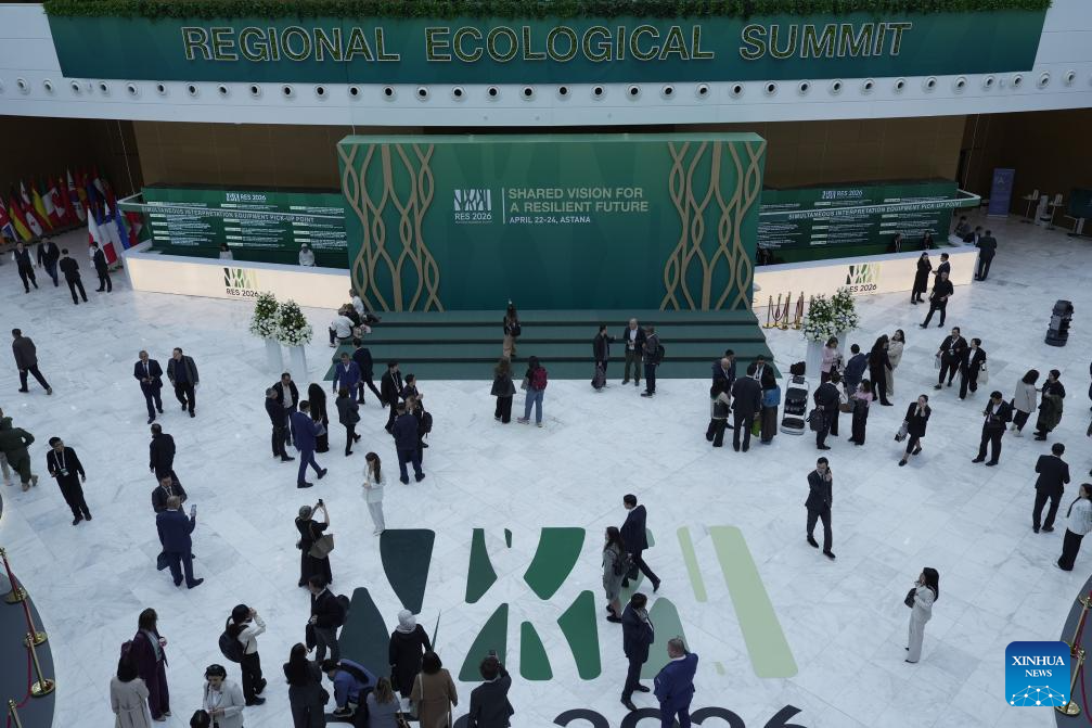 This photo taken on April 22, 2026 shows a scene during the Regional Ecological Summit in Astana, Kazakhstan. The Regional Ecological Summit was held in Astana from Wednesday to Friday. (Kazakhstan's presidential press service/Handout via Xinhua)