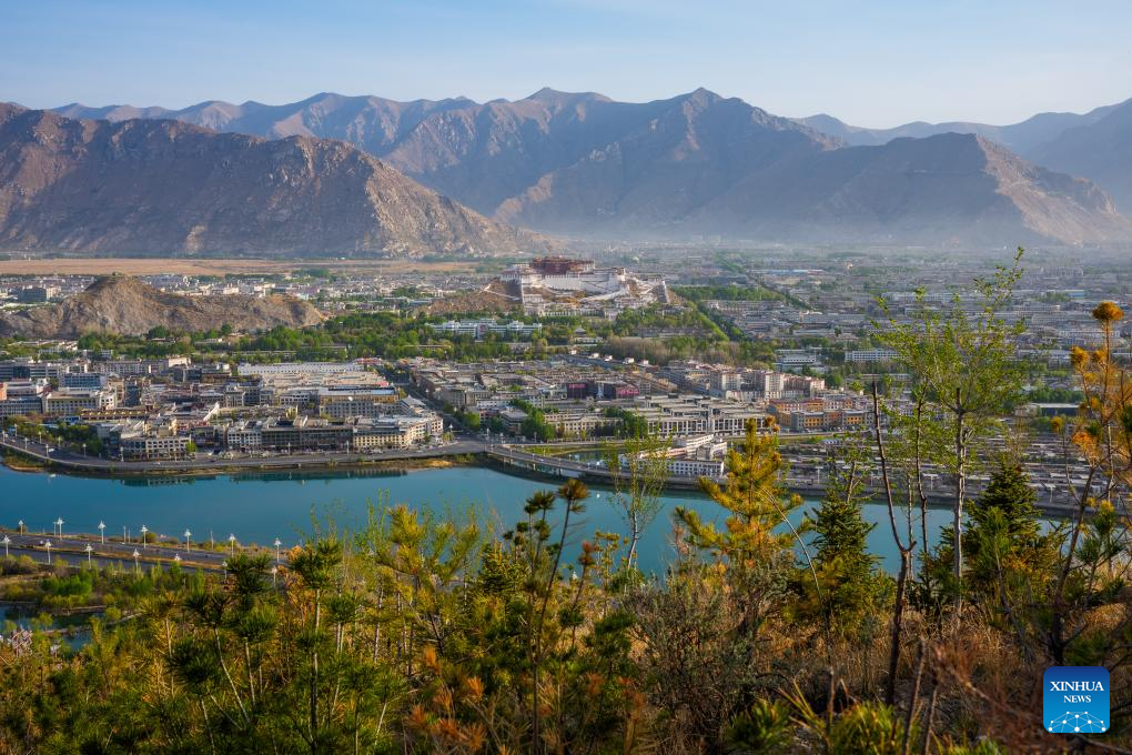 This photo taken on April 26, 2026 shows the Potala Palace seen from the Nanshan park in Lhasa, southwest China's Xizang Autonomous Region. (Xinhua/Tenzin Nyida)